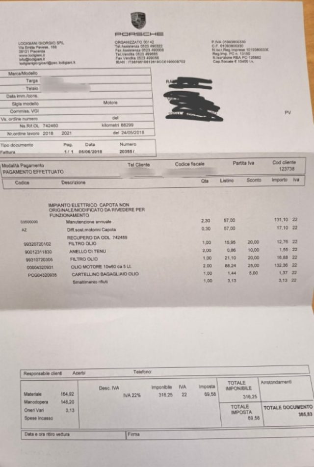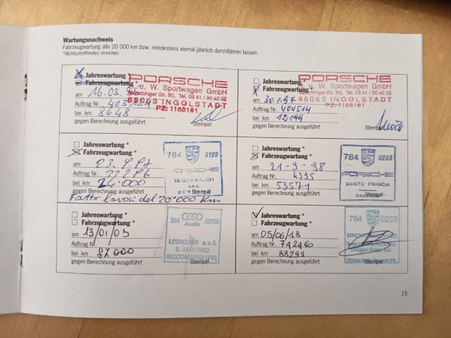 - Chilometraggio documentato da libretto di servizio a corredo, presente ultima fattura di tagliando in Porsche.